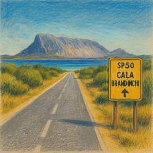 Dopo il bivio di Cala d’Ambra, svolta sulla SP50 in direzione Brandinchi.